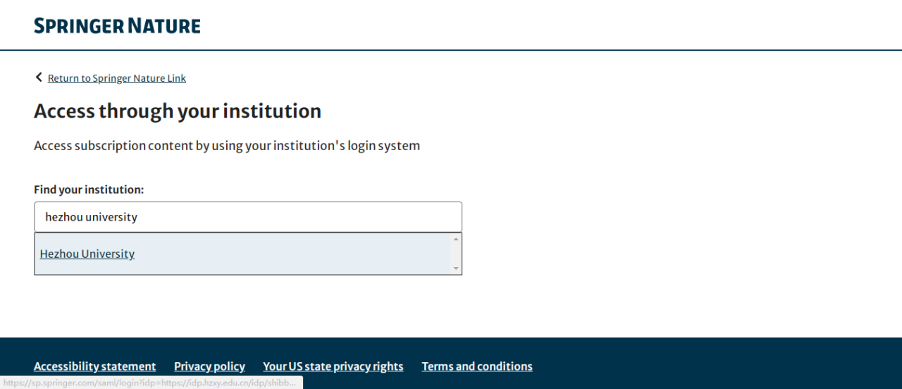 https://sp.springer.com/saml/login?idp=https://idp.hzxy.edu.cn/idp/shibboleth&targetUrl=http%3A%2F%2Flink.springer.com